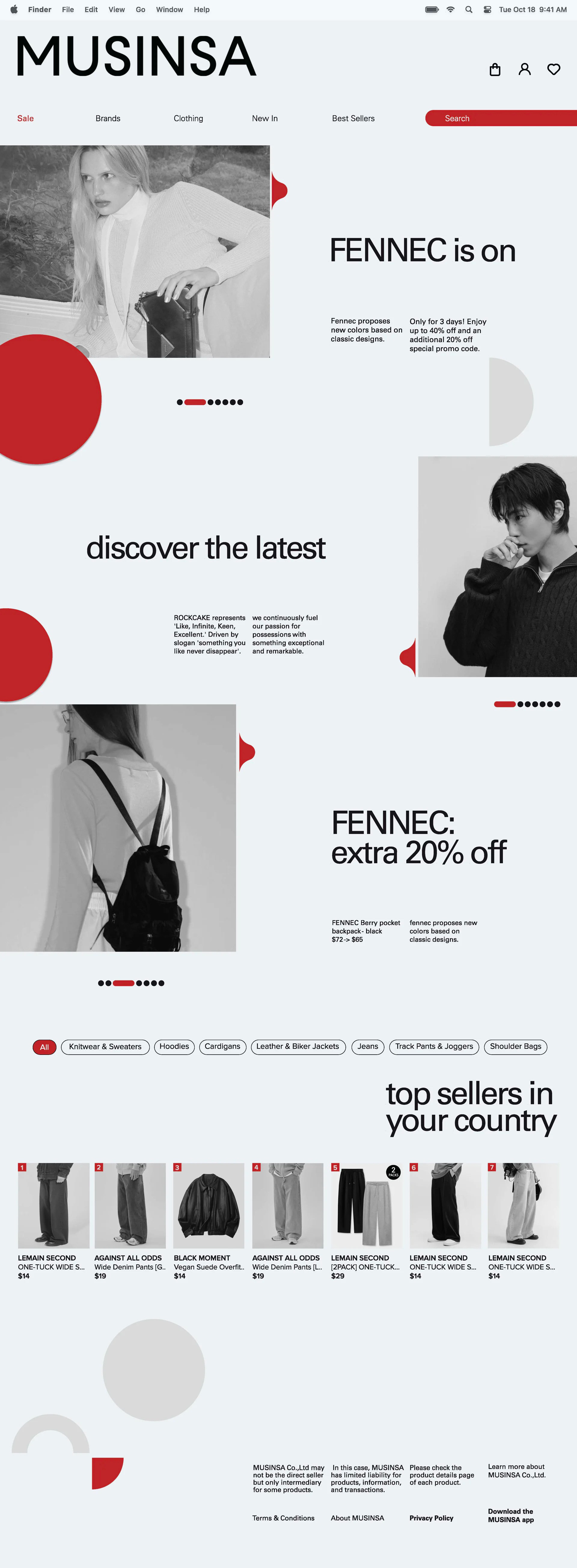 This project is a redesign of a popular clothing retail platform—widely used in Korea and around the world—reimagined in the visual style of renowned early 20th-century designer Armin Hofmann. The design focuses on translating contemporary e-commerce elements through Hofmann’s signature use of typography, contrast, and composition.